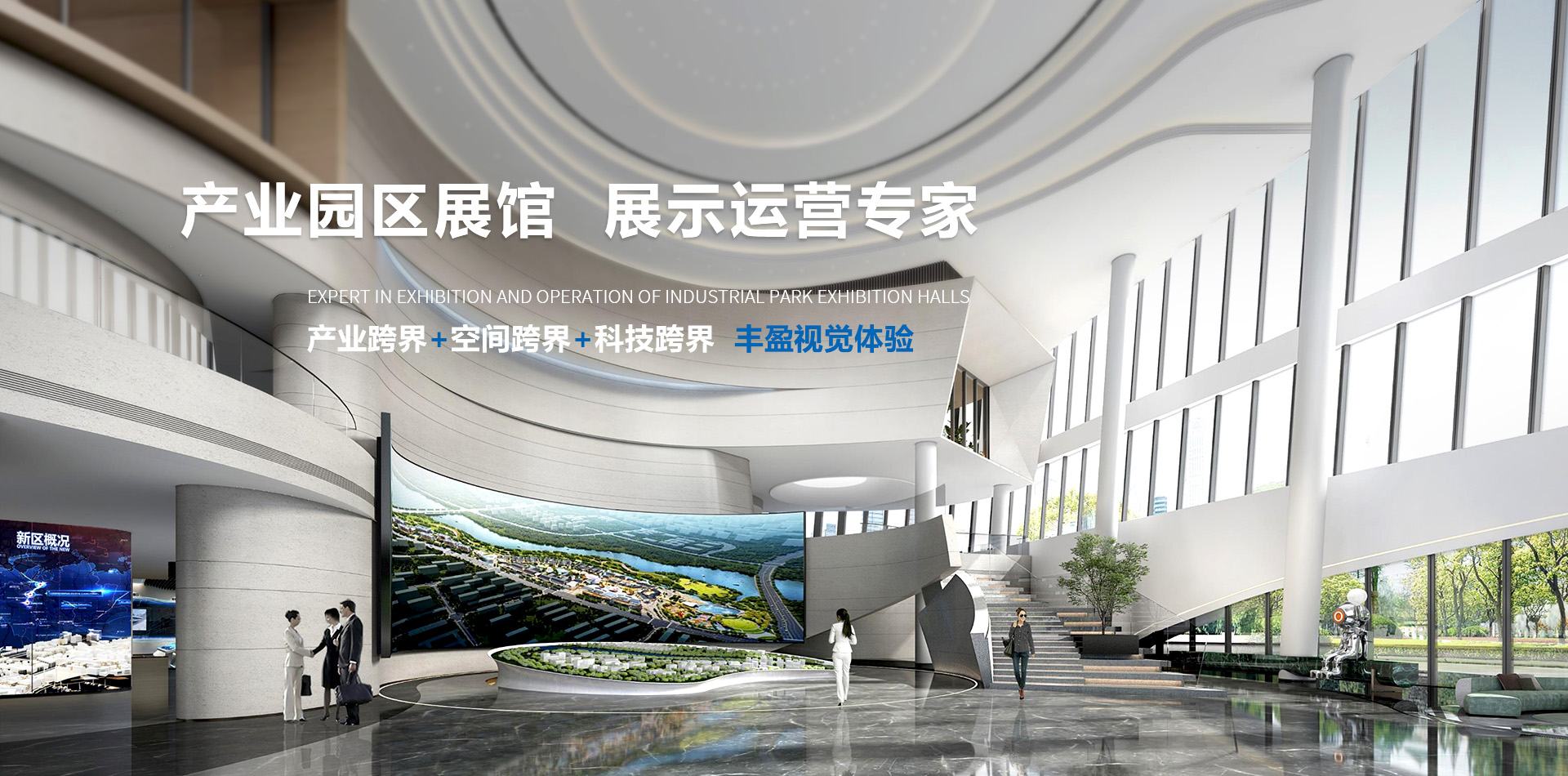 華竣國際集合了產業定位、前瞻策劃、創意設計、數字視覺、定制工程、生態(tài)運營為一體的全流程展示服務,致力于為城市、產業園區、新興產業、大健康產業、教育科普、